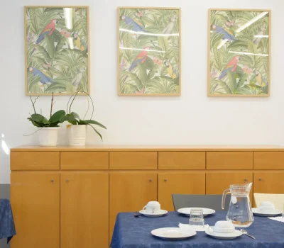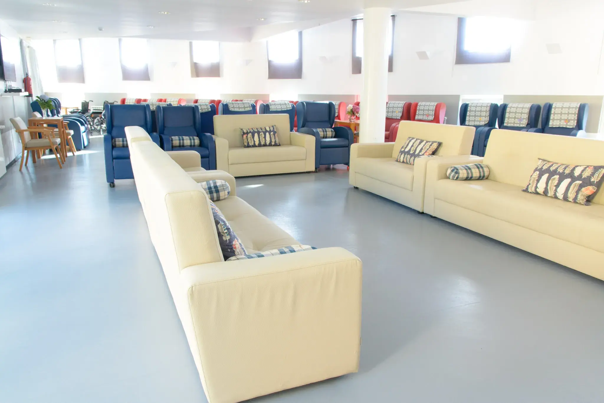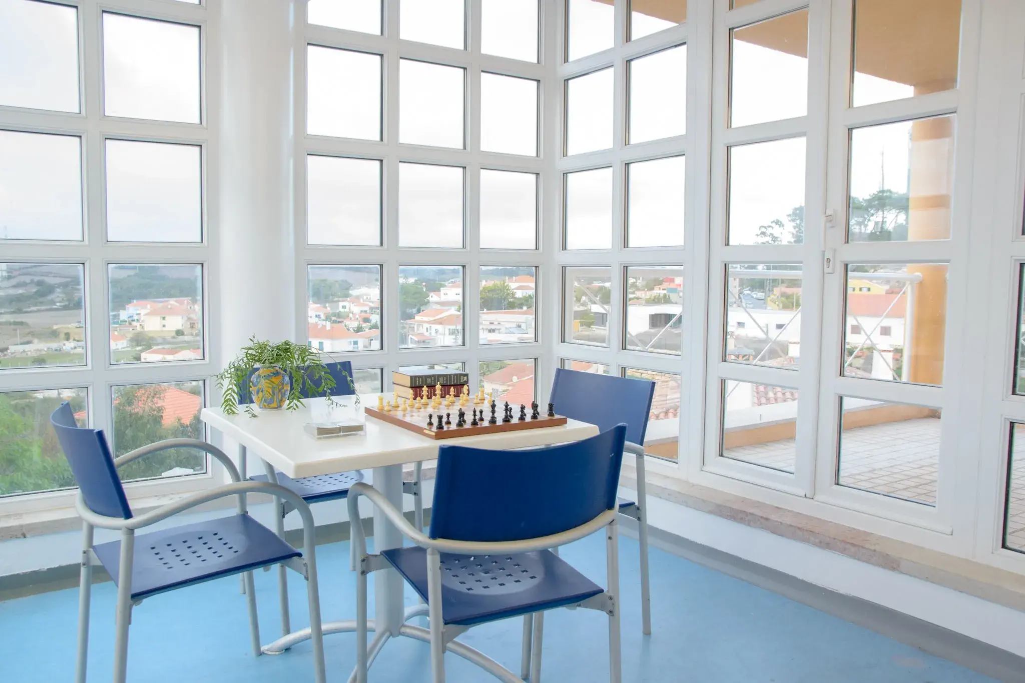 Área habitacional com uma capacidade para 52 residentes, repartida por três pisos, dispondo de um quarto triplo, quartos duplos, quartos duplos com wc, quartos single, suite e suite plus. Dispomos também de camas articuladas para pessoas acamadas. De todos os quartos é possível usufruir de uma bonita e ampla vista.